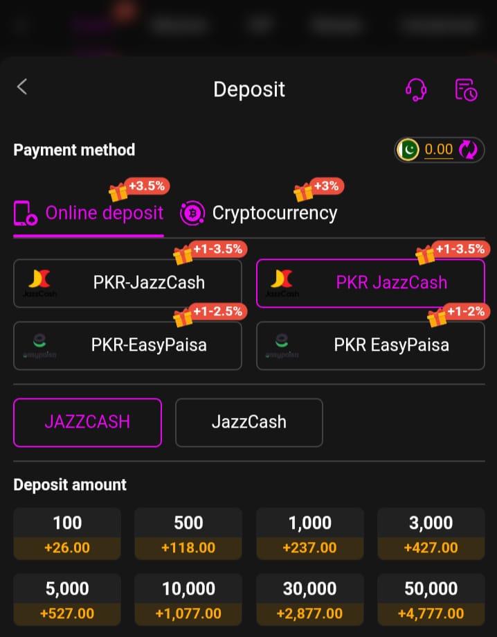 - Go to the “Deposit” section